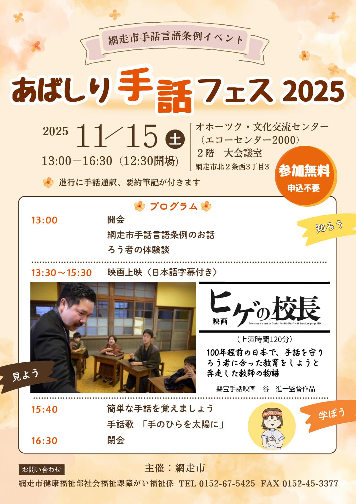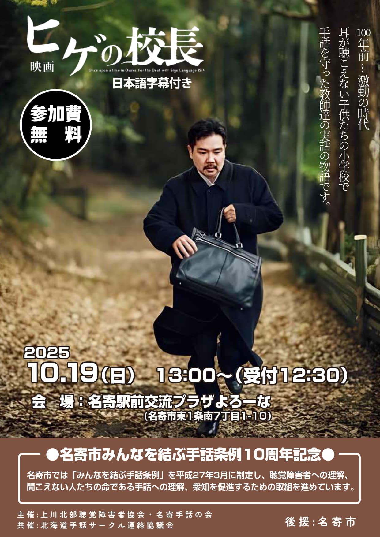 2025/10/19 上川北部聴覚障害者協会・名寄手話の会主催 名寄駅前交流プラザよろーなにて上映 |